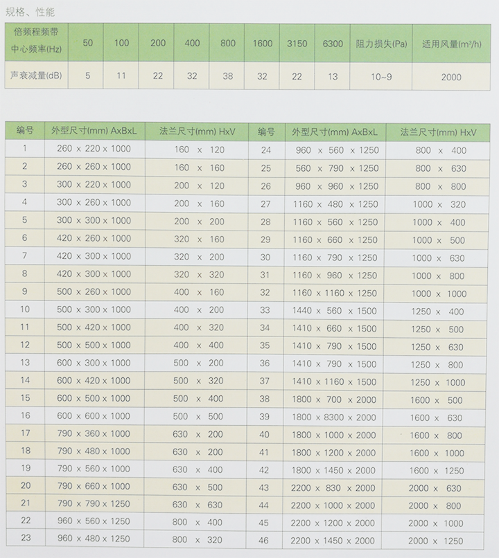 ZP100型消聲器系列是在國(guó)家通用圖集T701-6消聲器的基礎(chǔ)上,吸收了國(guó)內(nèi)外最新技術(shù),設(shè)計(jì)的新產(chǎn)品,是國(guó)家建筑標(biāo)準(zhǔn)設(shè)計(jì)圖集通用產(chǎn)品。標(biāo)準(zhǔn)號(hào)為97T710。 ZP100型消聲器系列主要應(yīng)用于各類(lèi)通風(fēng)空調(diào)系統(tǒng)中的噪聲治理,可有效地降低空氣動(dòng)力性噪聲,具有適用風(fēng)量范圍大、系列規(guī)格全、與標(biāo)準(zhǔn) 風(fēng)管配套好、消聲量高、氣流阻力小、防火、防潮、防霉、防蛀等特點(diǎn),特別適用于種類(lèi)大型公共建筑,例如:廣播電視大樓、影劇院、賓館、寫(xiě)字樓等高層建筑的通風(fēng)空調(diào)系統(tǒng)消聲,也可適用于工業(yè)企業(yè)的通風(fēng)系統(tǒng)消聲。 ZP100型消聲器為矩形片式結(jié)構(gòu),采用鍍鋅鋼板制作,咬口拼接。共有49個(gè)規(guī)格,處理風(fēng)量范圍為720m /h-90000m /n(也可特殊定制),消聲量為15dB(A)/m,壓力損失14-55Pa(風(fēng)速5-10010m/s)。ZP100型消聲器片厚100mm,單節(jié)有效長(zhǎng)度為1000mm,根據(jù)消聲量需要及現(xiàn)場(chǎng)安裝位置的不同,可幾節(jié)消聲器串聯(lián)組合使用。經(jīng)同濟(jì)大學(xué)聲學(xué)所測(cè)定,消聲量為15db以上,壓力損失為14-55Pa。 外形示意圖 ZP100-型消聲器規(guī)格選用表